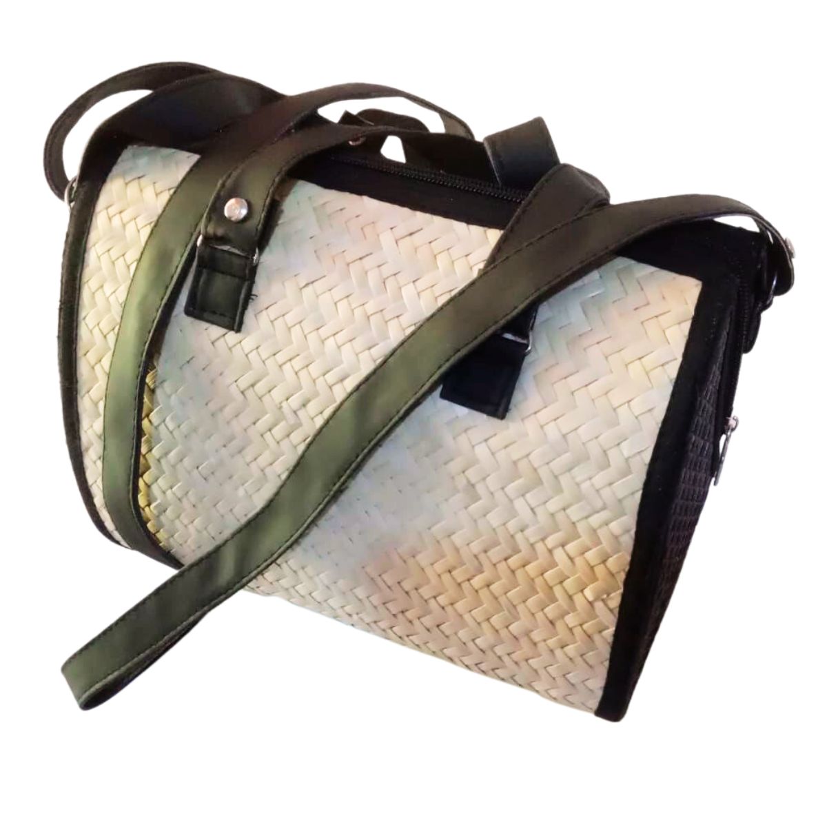 Introducing the EarthRing Reed Handbag—a paradigm of sustainability in the realm of fashion. Breaking away from conventional handbags, this eco-conscious accessory is crafted with 80% natural reed, making it a 100% biodegradable marvel that aligns seamlessly with environmental values. The remaining components, leather, and metal, are thoughtfully integrated to enhance durability and style.